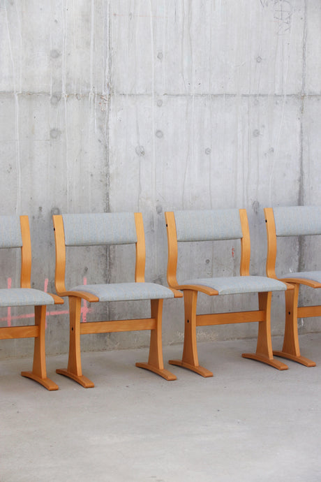 Set Of 6 Mid Century Beech Dining Table Chairs