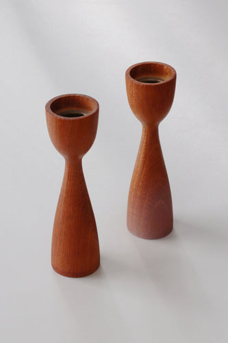 Short Teak Candlestick Holders