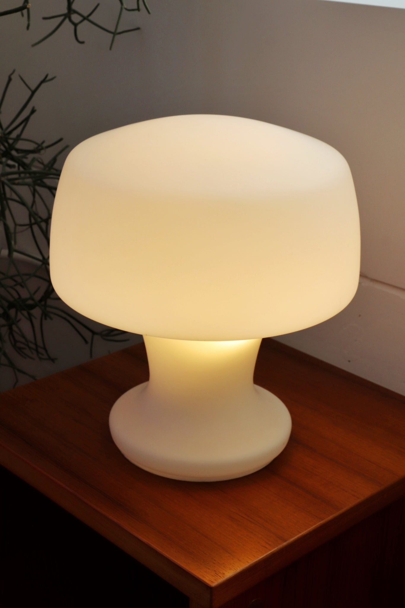 1960's large scale hand blown frosted glass mushroom lamp by Laurel Lamp Co. In excellent vintage condition with no chips or cracks throughout. If you'd like additional details or photos you can email us to inquire. Made in Italy.