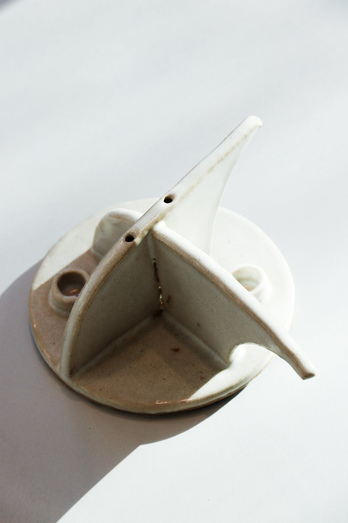 Abstract ceramic studio pottery object— can also hold candlesticks. In good vintage condition with no cracks or chips throughout.