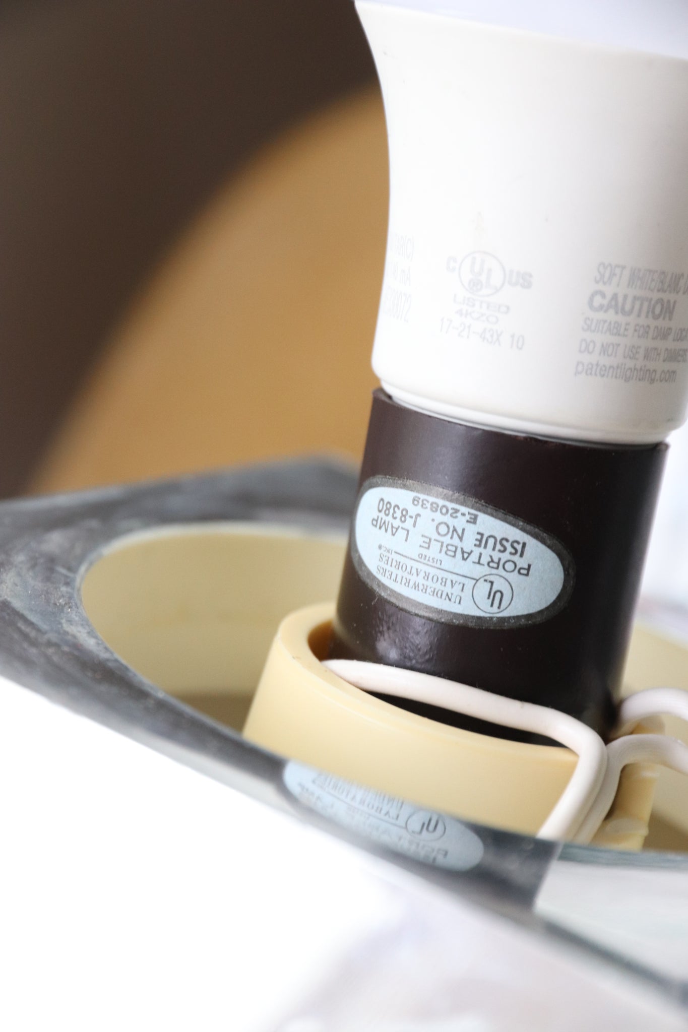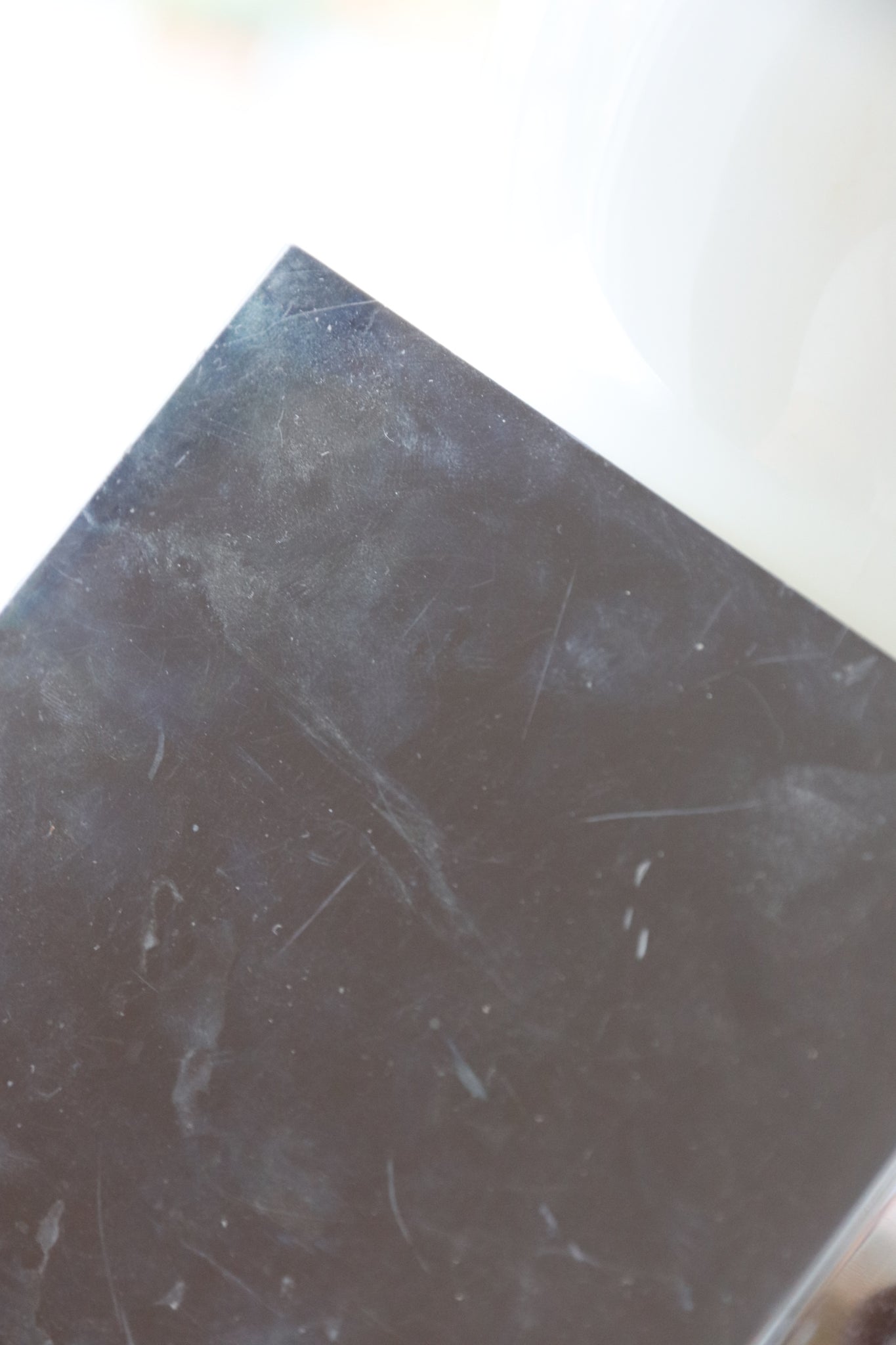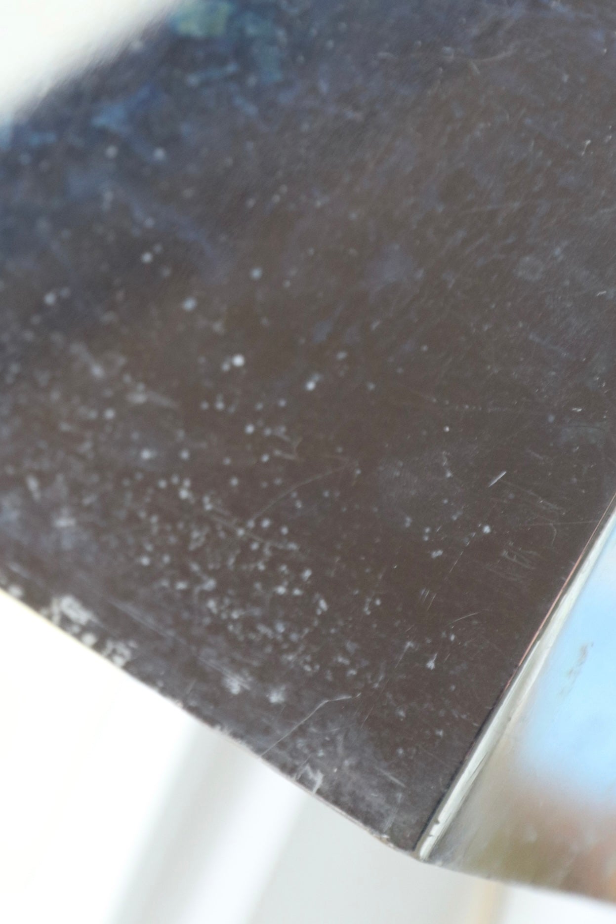Chrome cube lamp with a glass globe. In good vintage condition with light surface wear such as light scuffs, scratches, and dings throughout base with no chips or cracks in the glass.