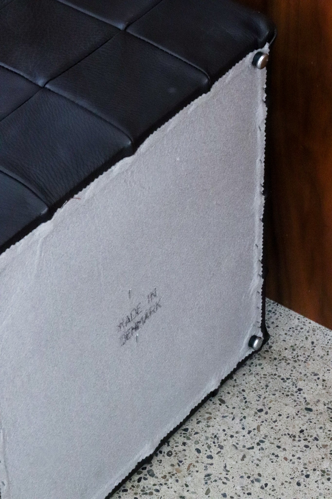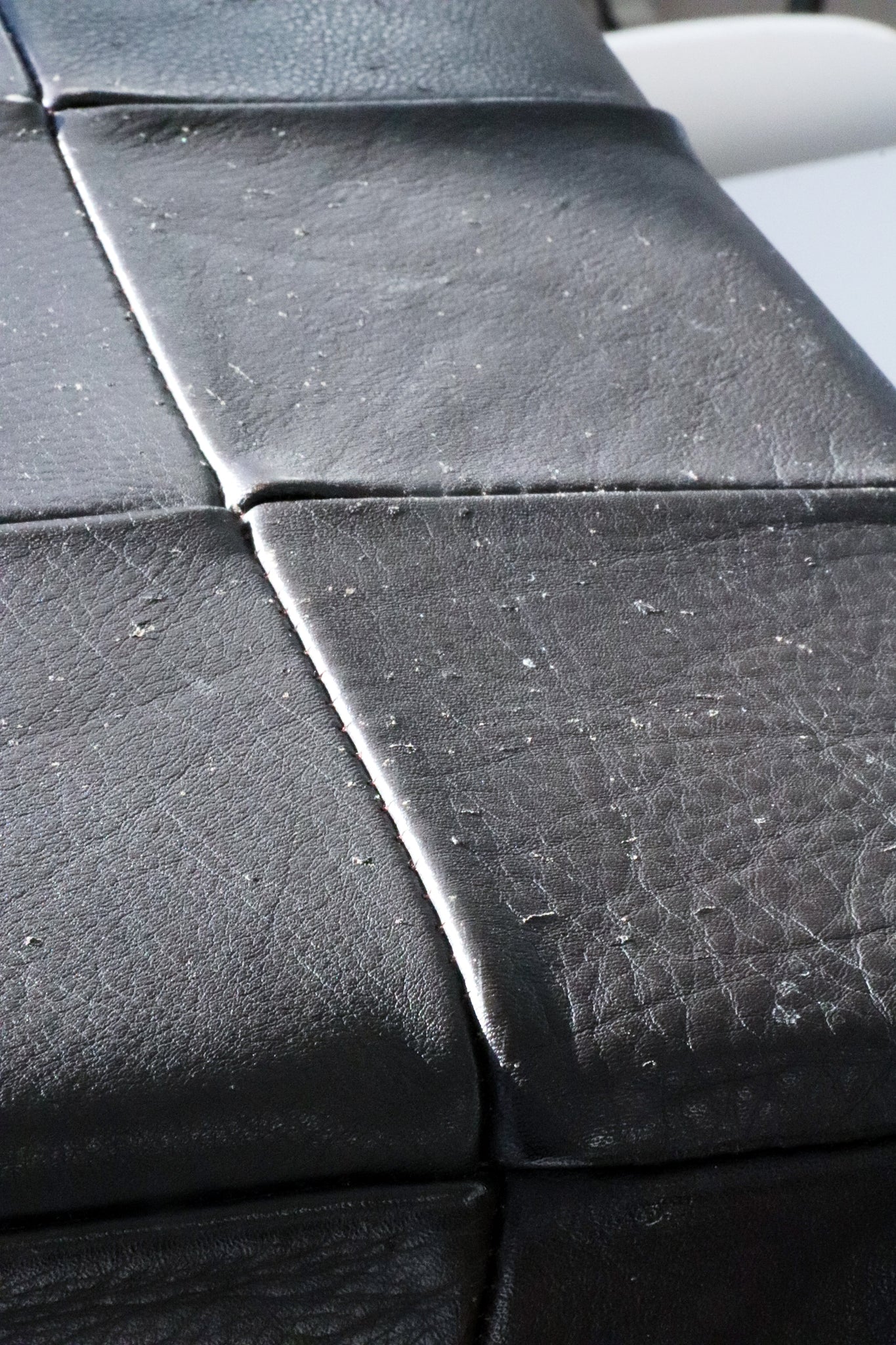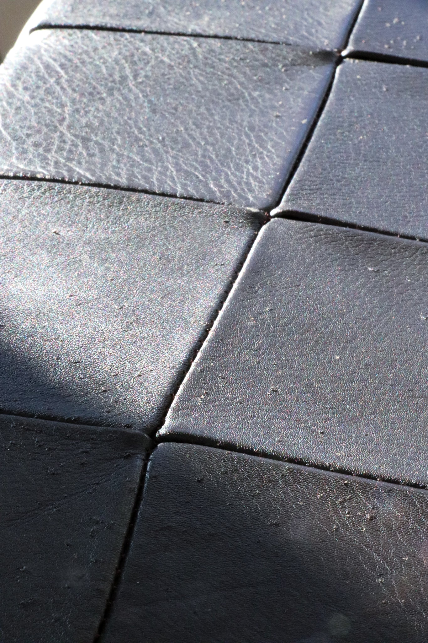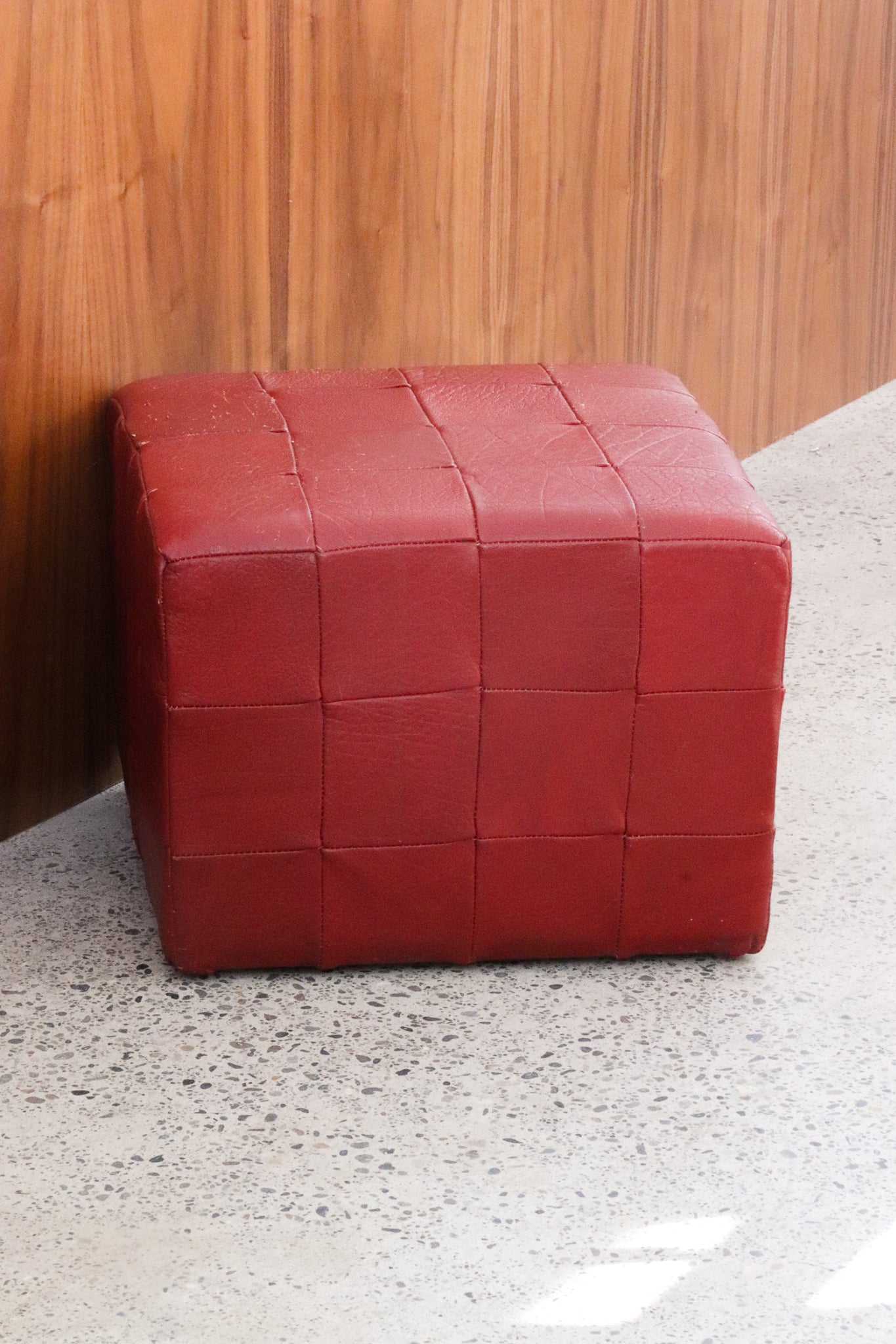 Small Y2K Danish leather patchwork ottoman.