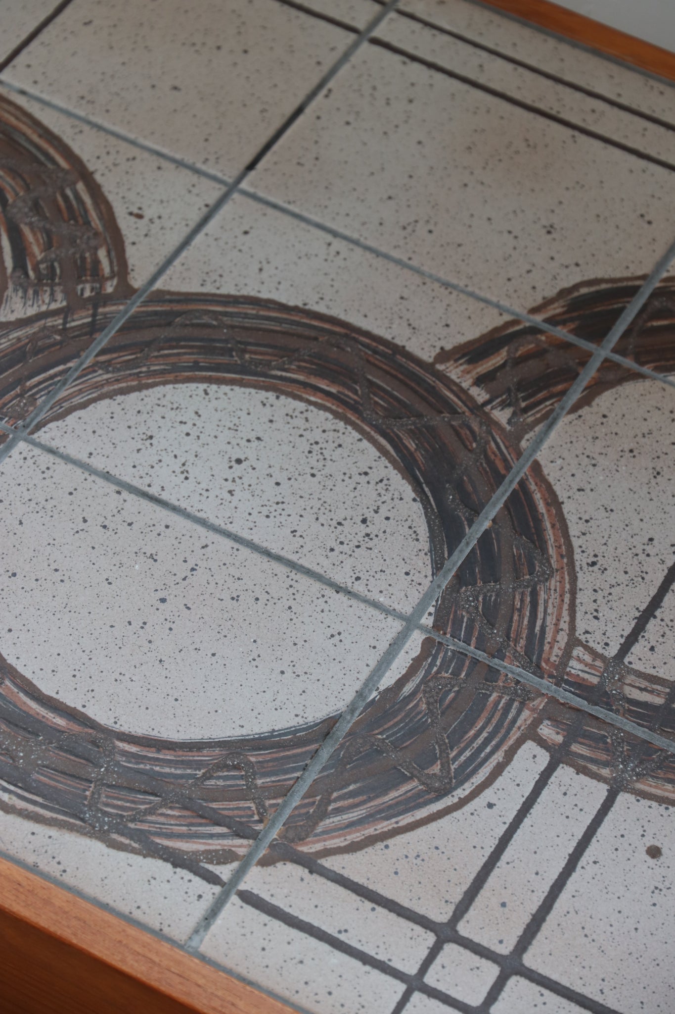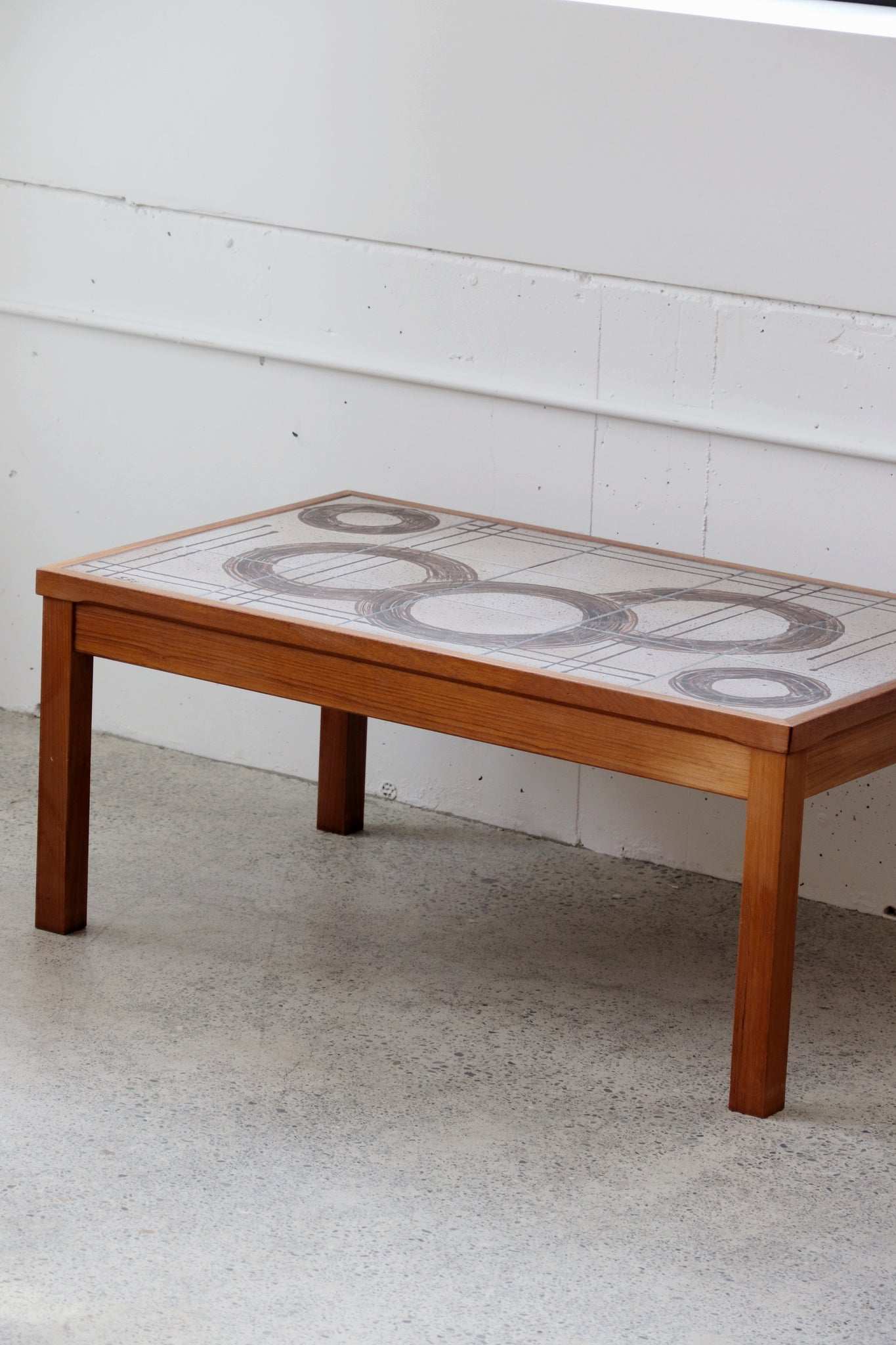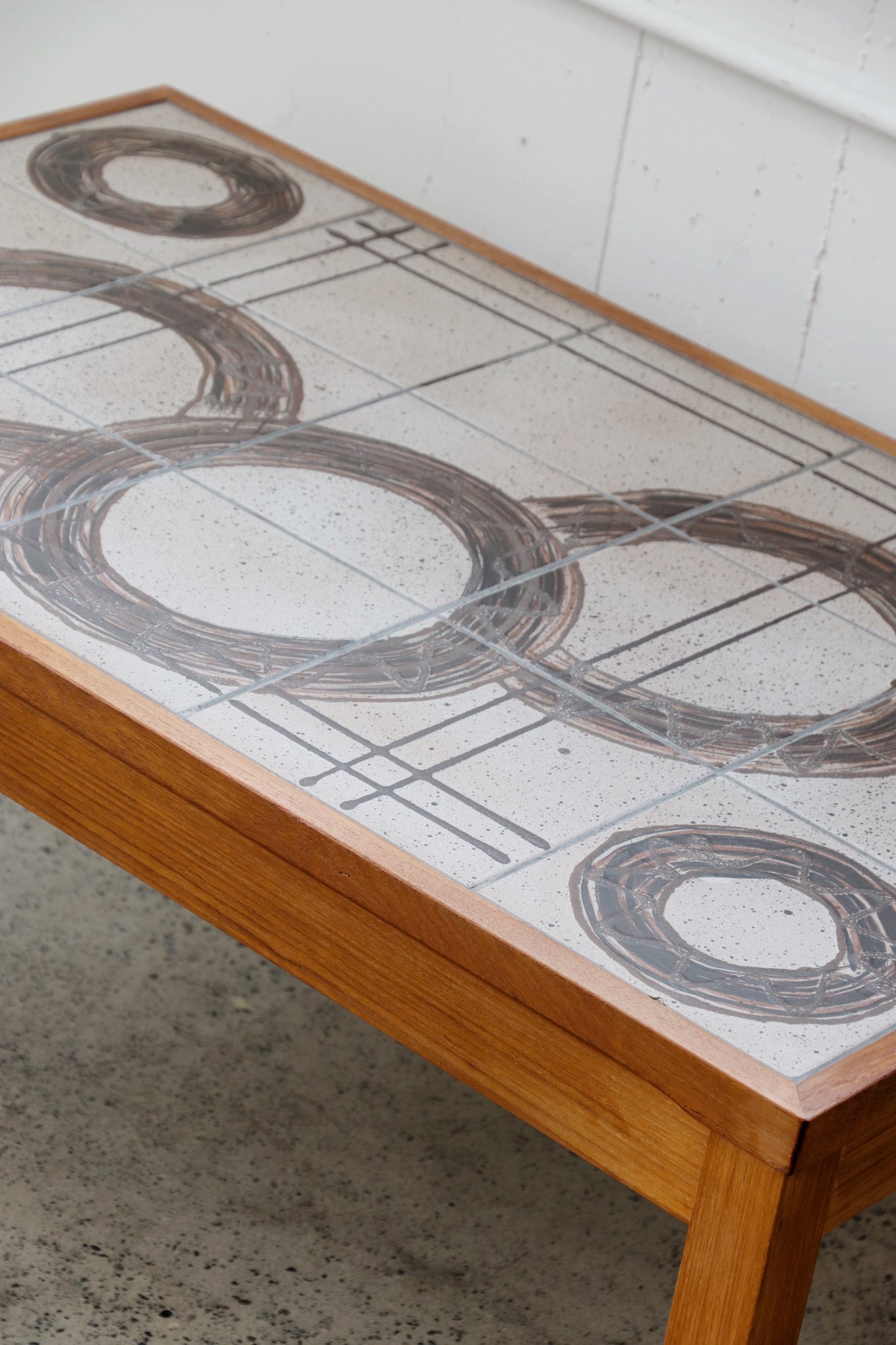 Danish teak and tile coffee table with a decorative design throughout the tile top. In very good vintage condition with very light wear throughout. If you'd like additional details or photos you can email us to inquire. No manufacturing markings present.