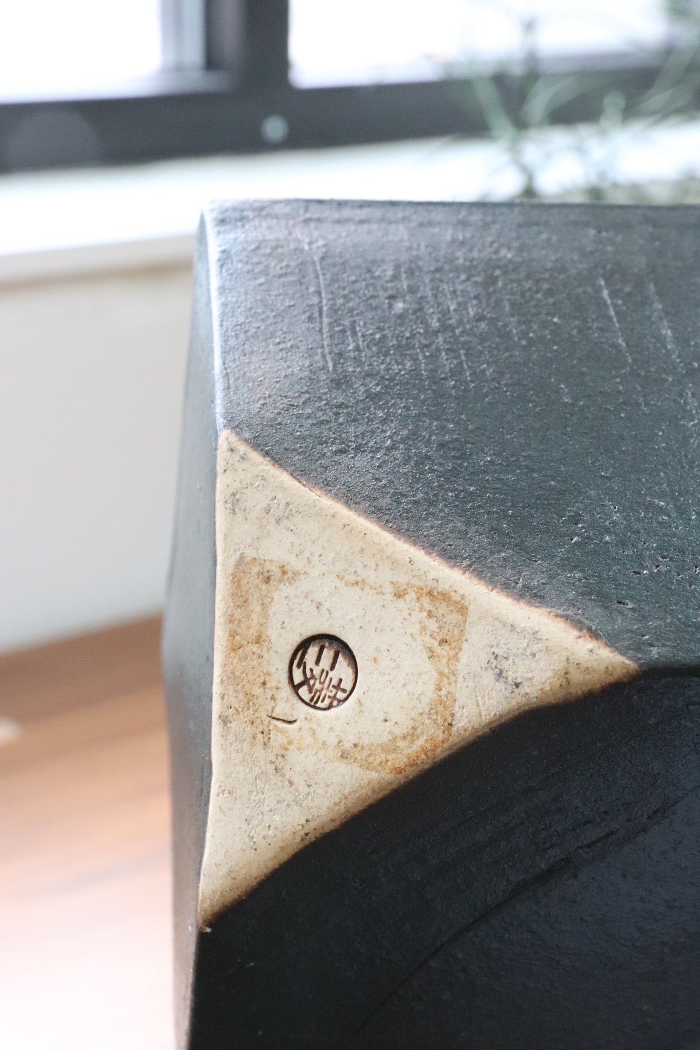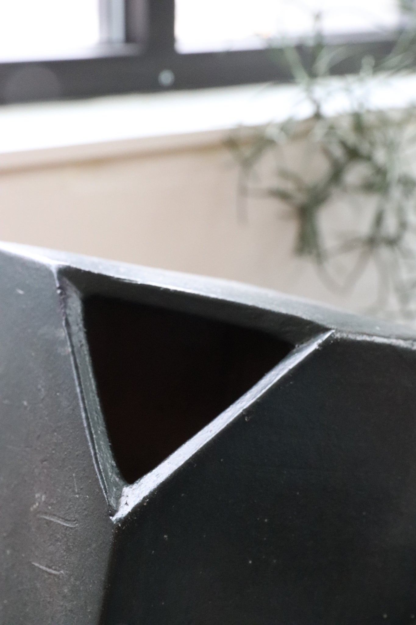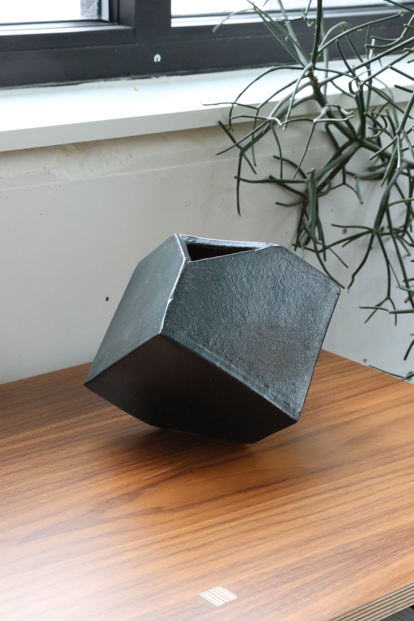 Geometric matte black ikebana, in excellent vintage condition.
