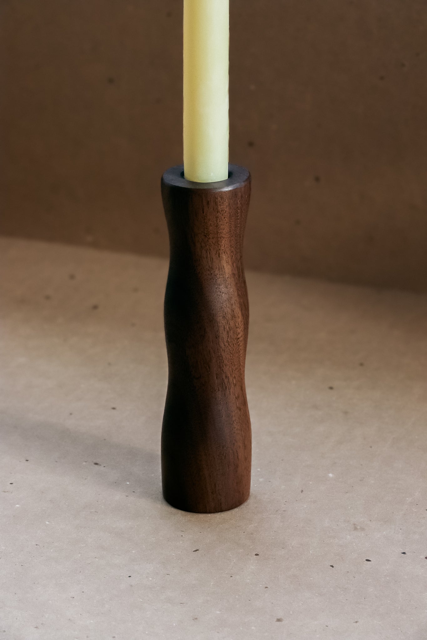 Handcrafted sculptural walnut candle holder, natural wax based finish. Made by Lydia Augerot from her studio in Seattle, Washington.