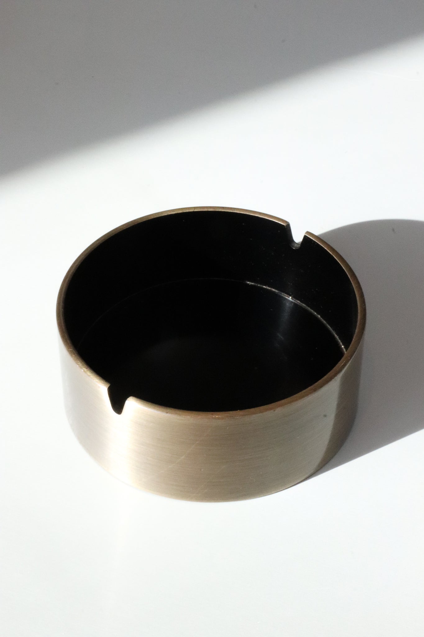 Small steel brassy ashtray with a steel black interior by duk-it. In good vintage condition with light patina throughout.