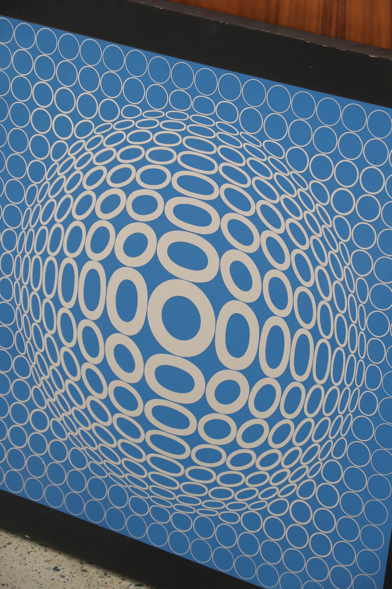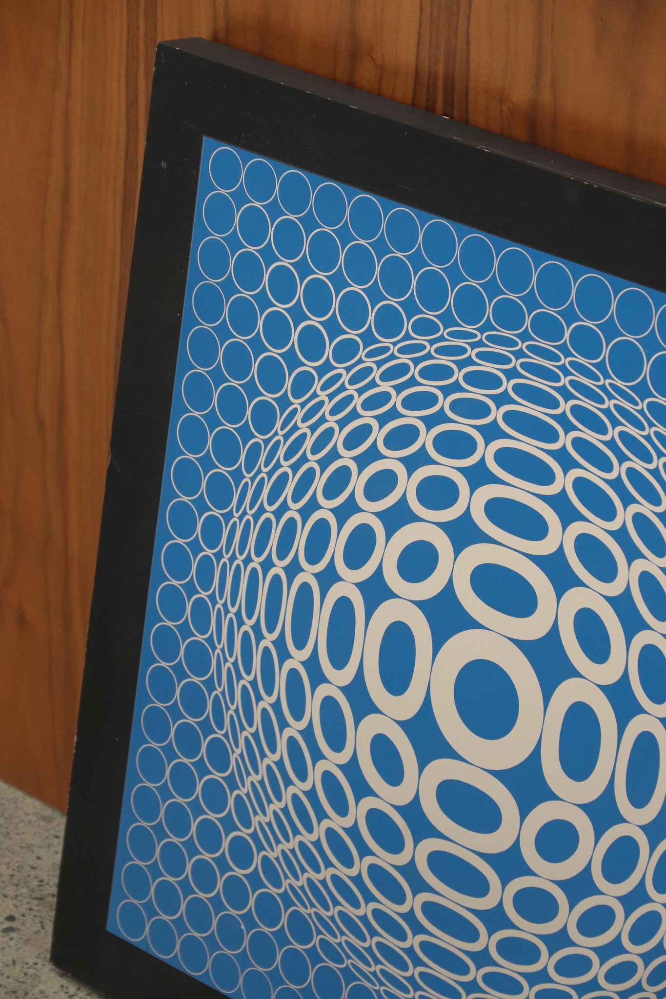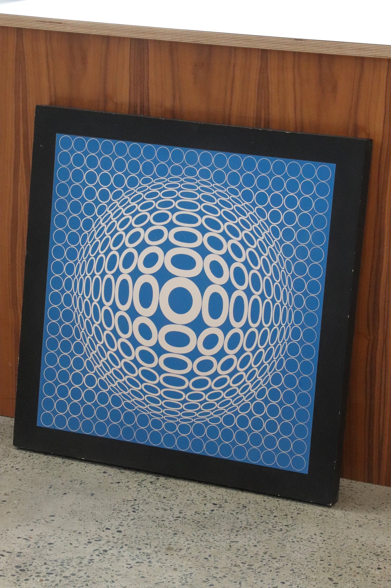 1970's "TUZ" blue and silver op-art print by Victor Vasarely. In good vintage condition with even sun bleaching throughout print with minor scuffs and patina. See photos for reference, if you'd like additional details or photos you can email us to inquire.