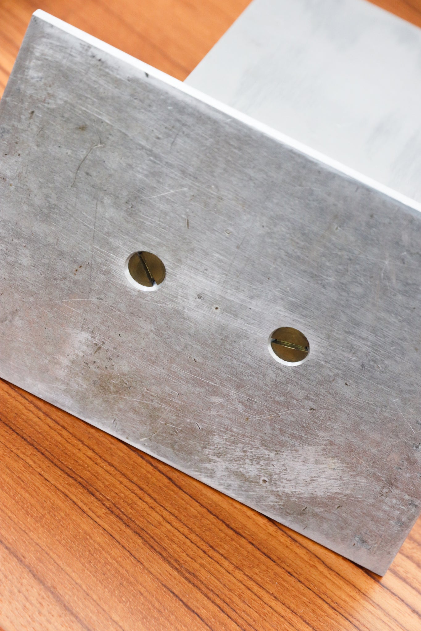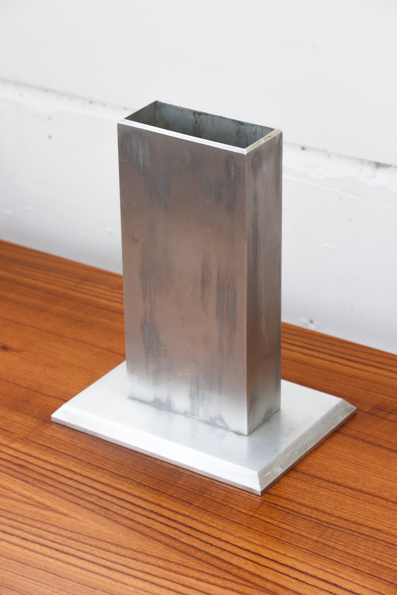 Sculptural steel vase with angular edges, in good vintage condition with age appropriate patina throughout.