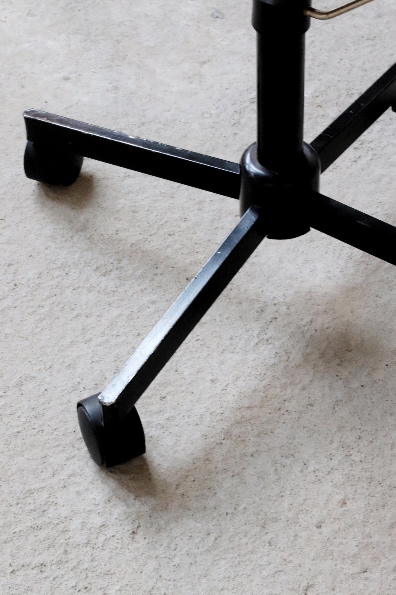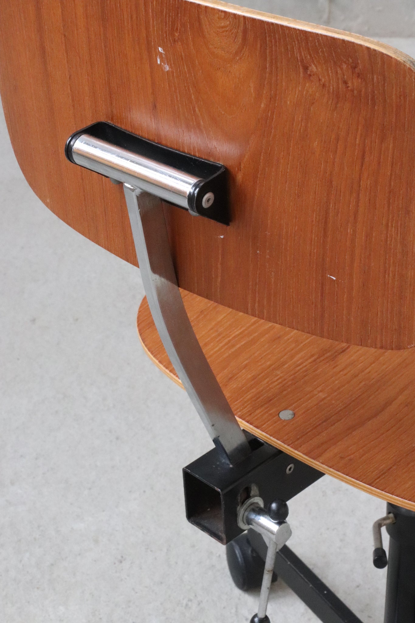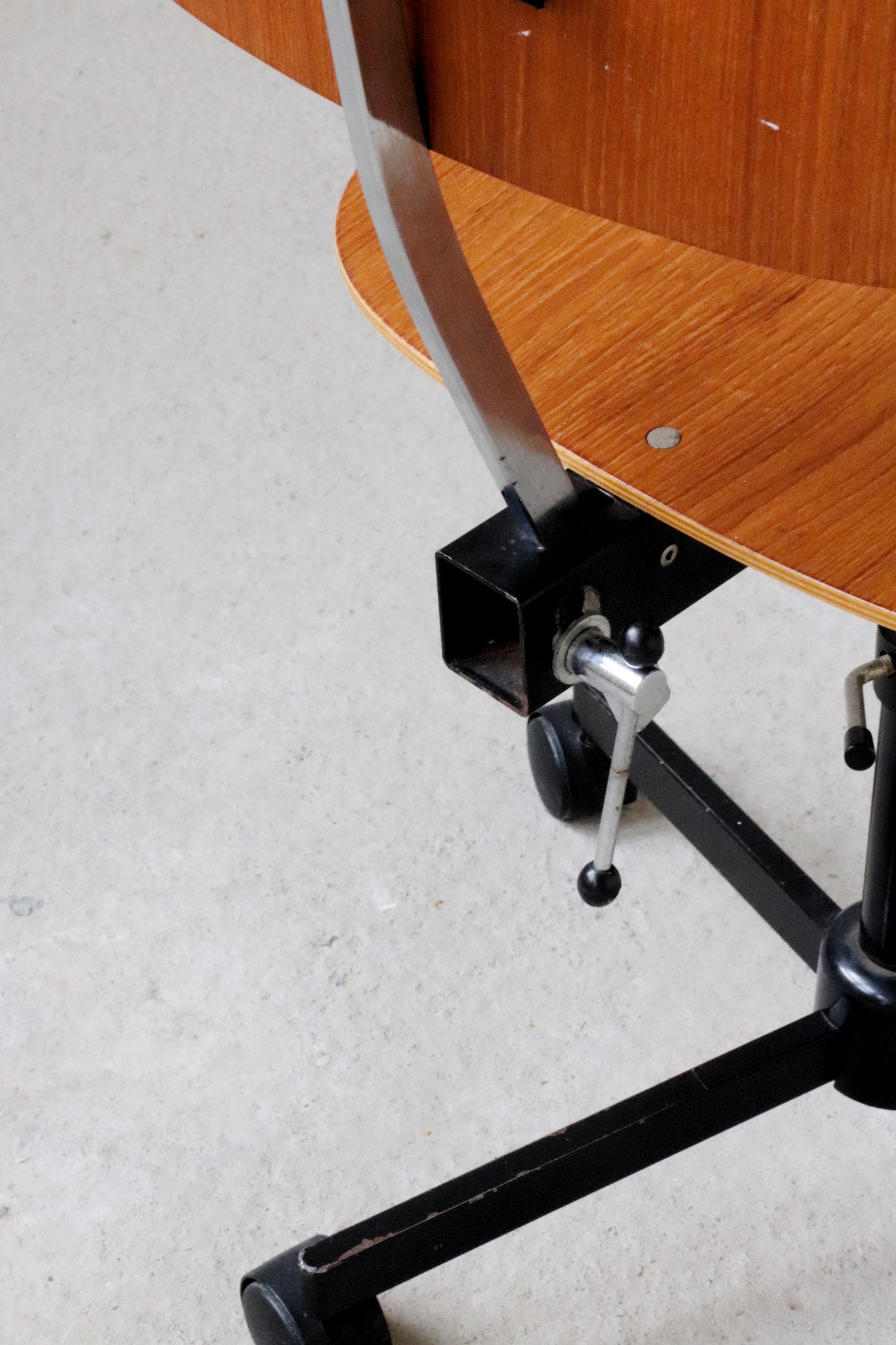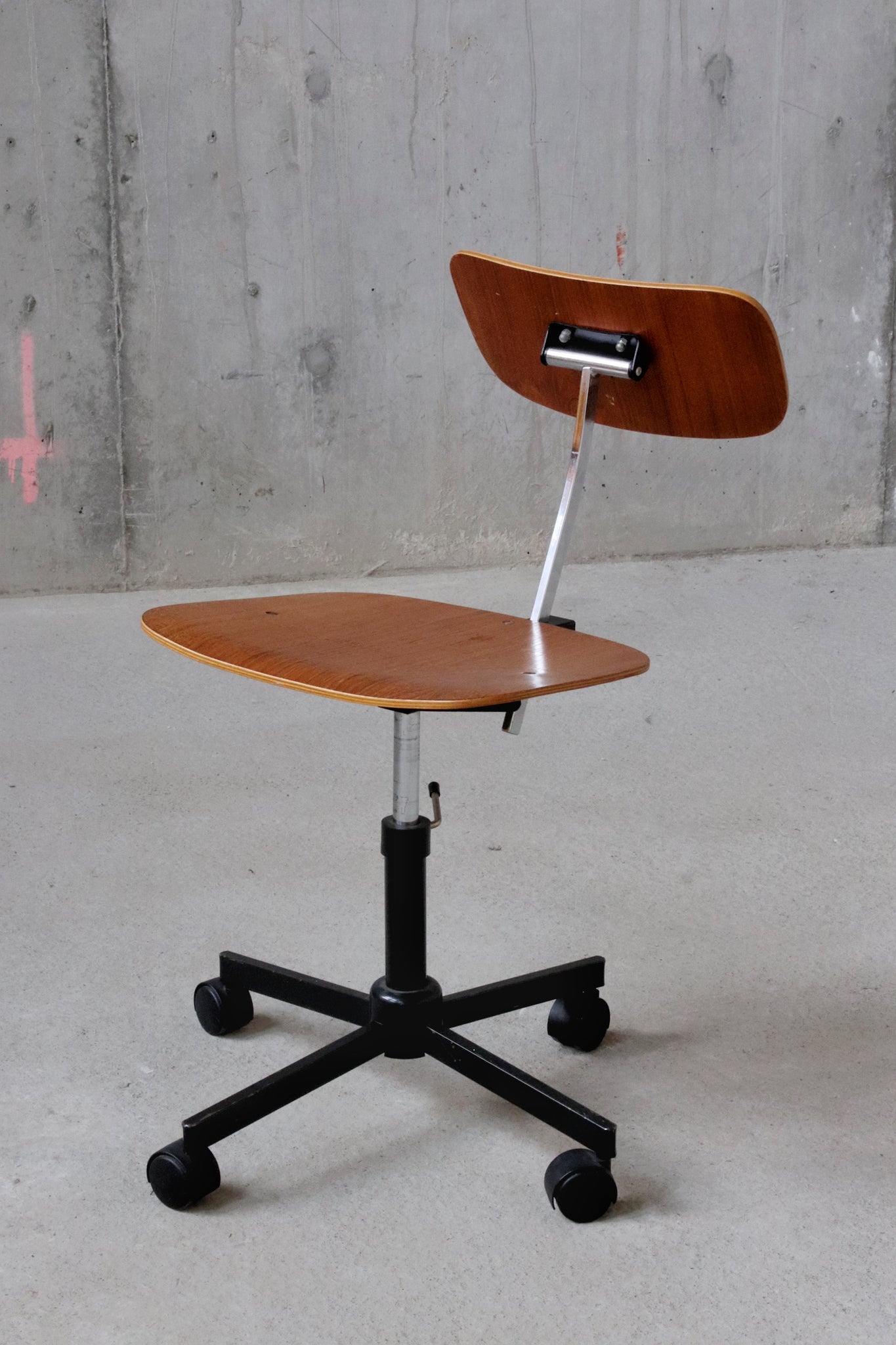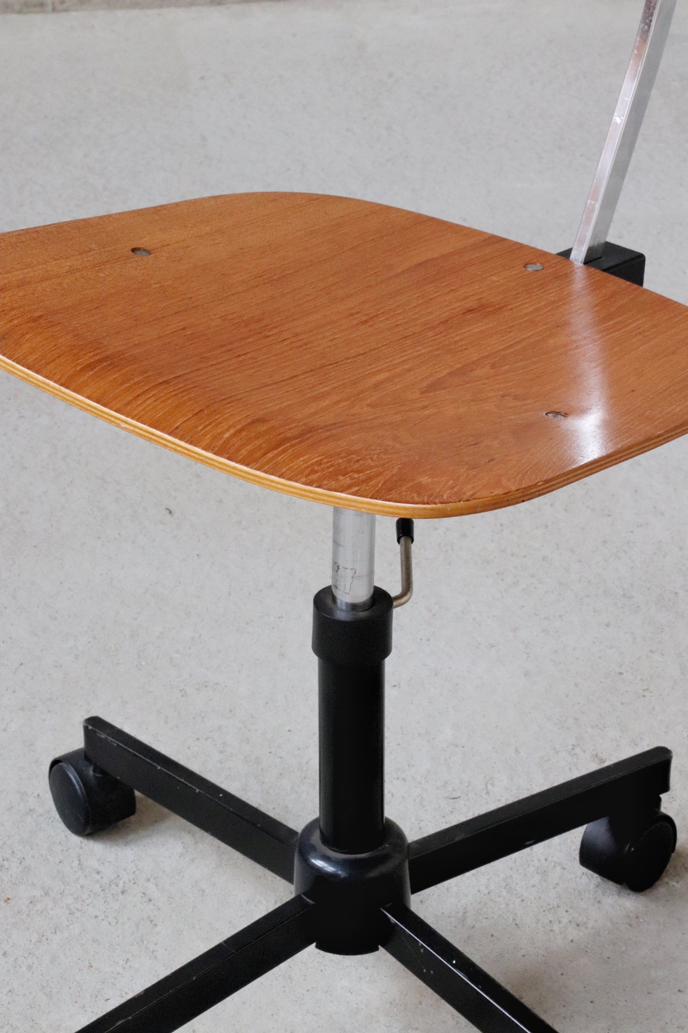 Danish Modern wood KEVI task chair designed by Jorgen Rasmussen. Chair features an adjustable back and height function. Back rest articulates for ample support. In very good vintage condition- shows age appropriate wear such as light scuffs, scratches, and patina throughout with some areas of wear on the chrome. Casters roll smoothly. If you'd like additional details or photos you can email us to inquire. No manufacturing markings present.