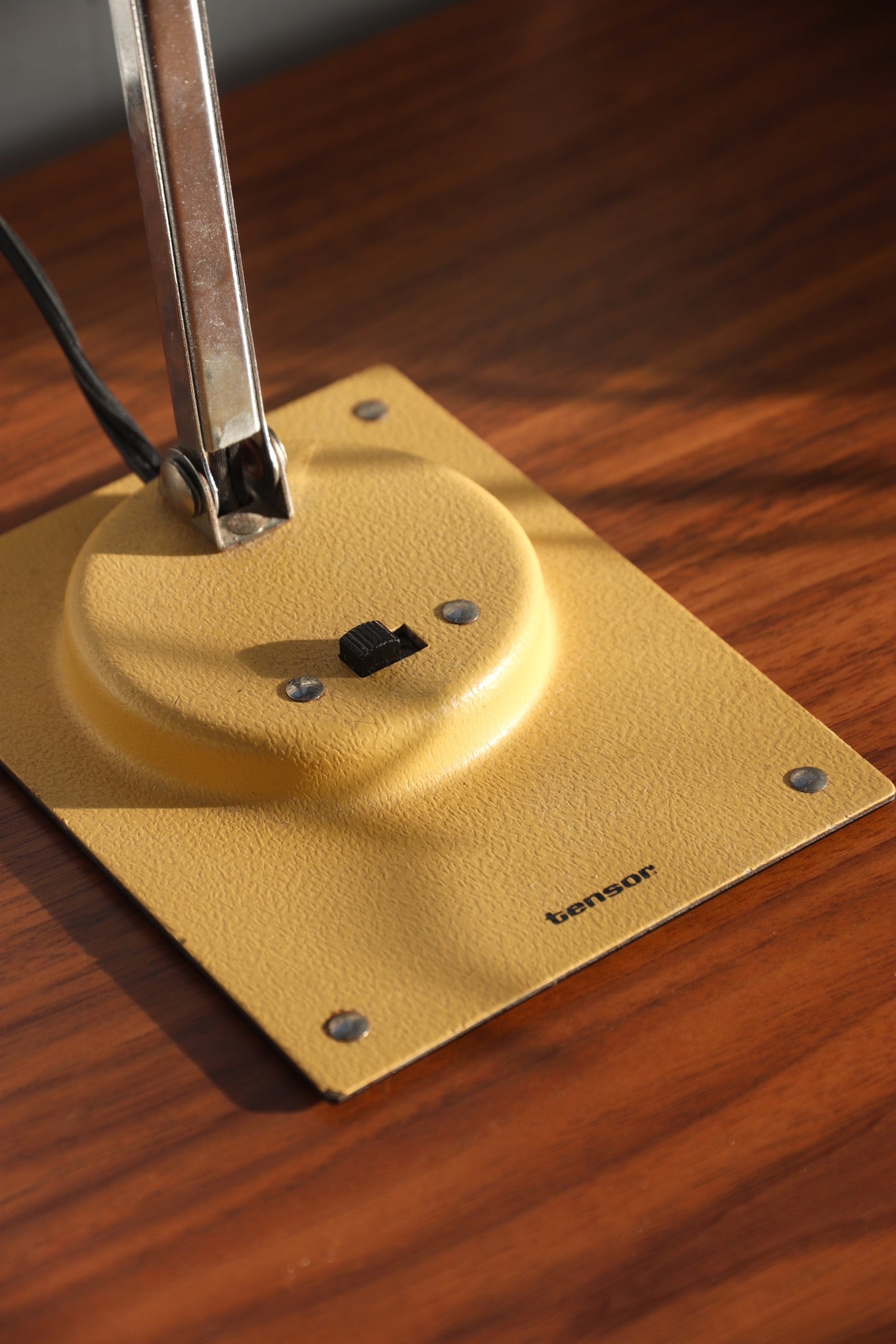 Adjustable yellow desk task lamp by Tensor. In great vintage condition with light wear and patina throughout.